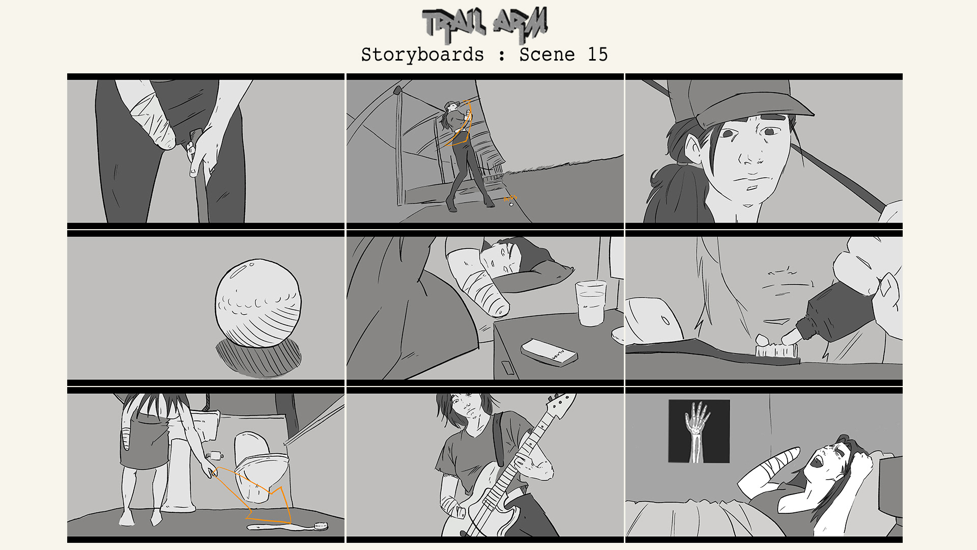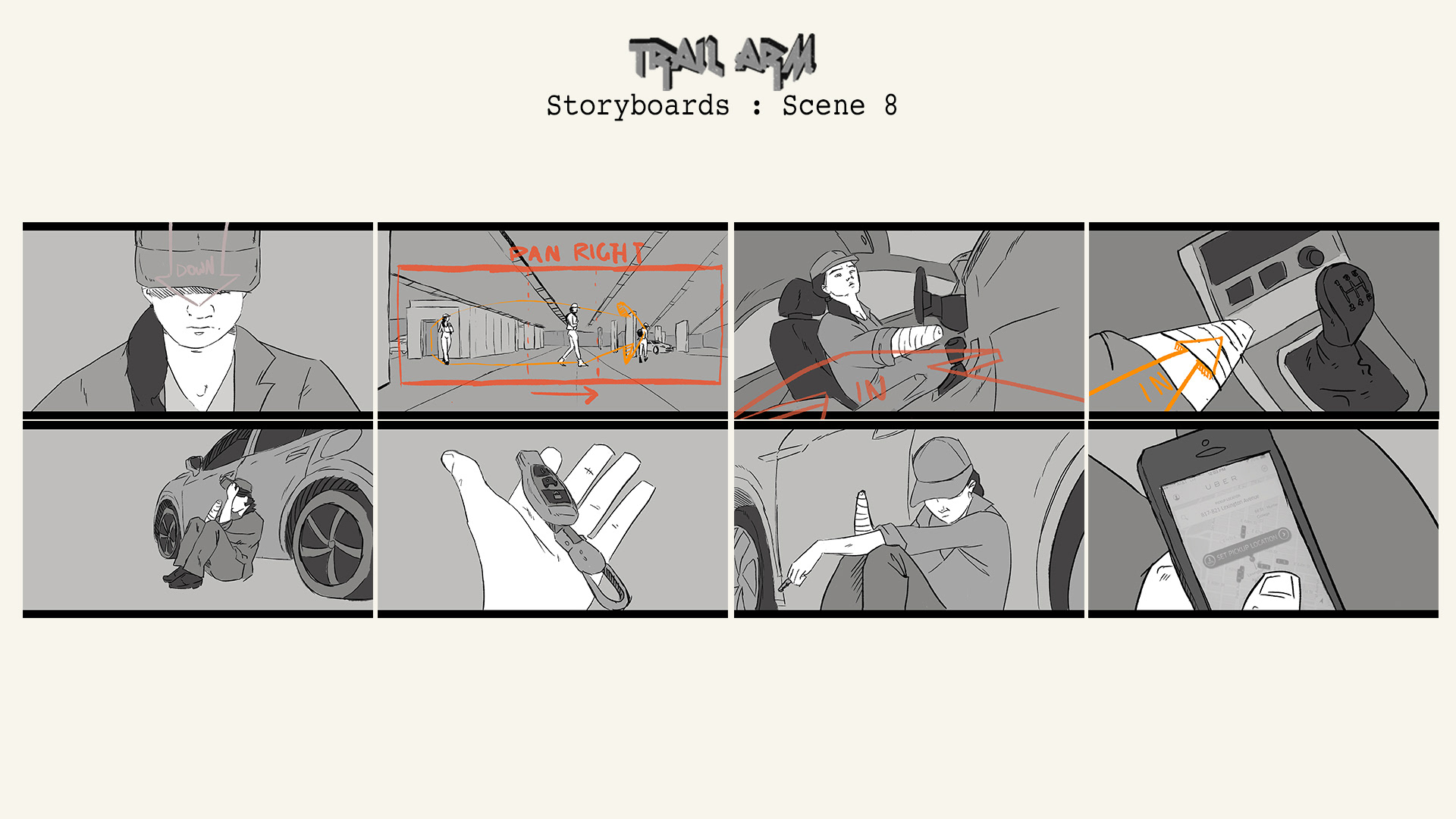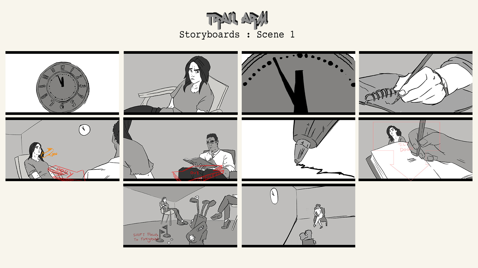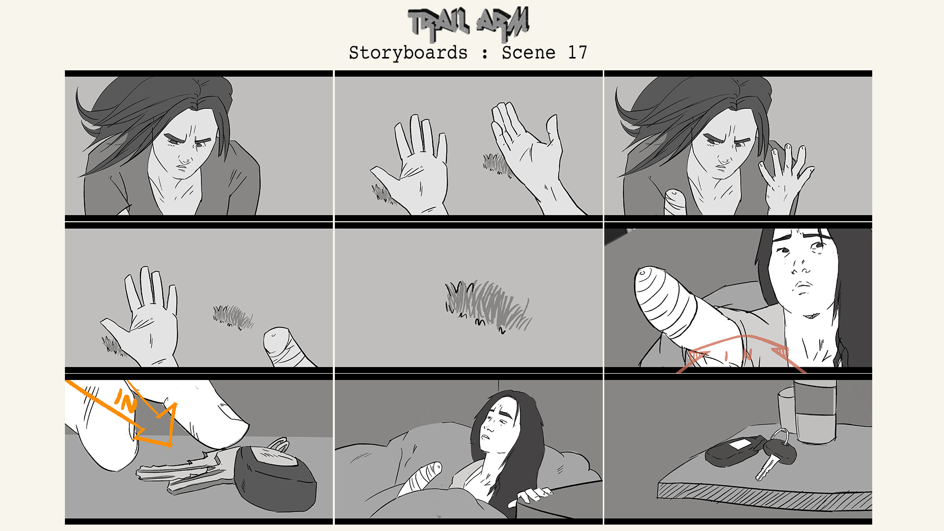 My illustrated storyboards for my upcoming short film project 'Trail Arm'.
