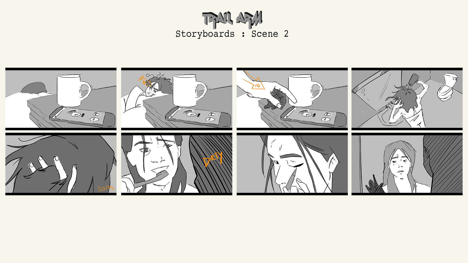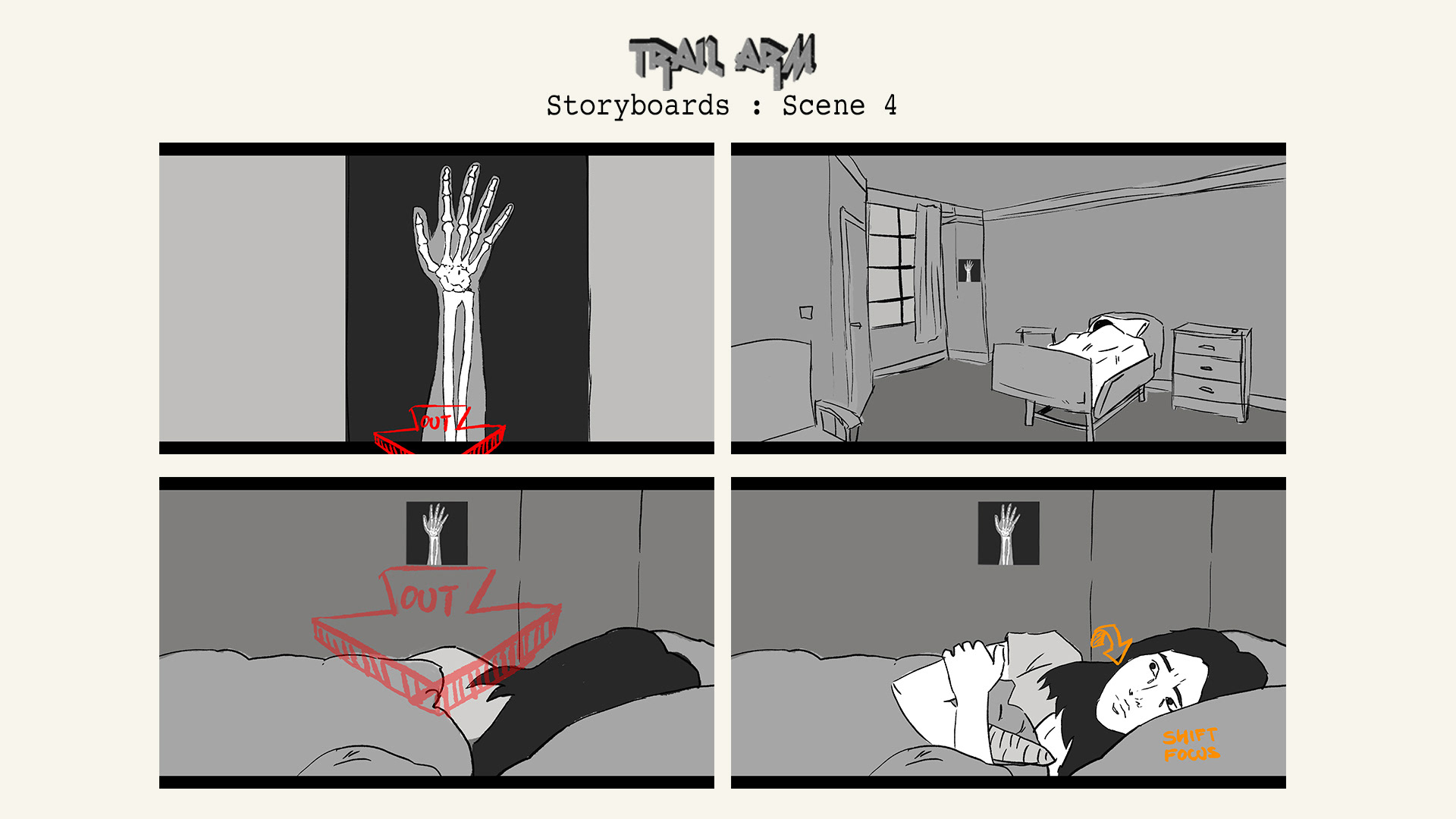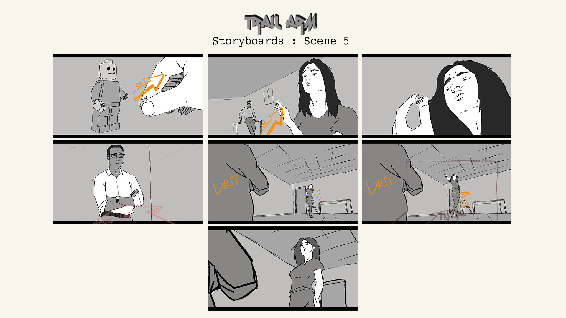 My illustrated storyboards for my upcoming short film project 'Trail Arm'.