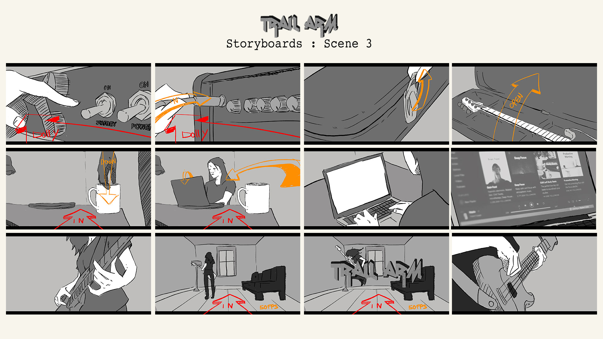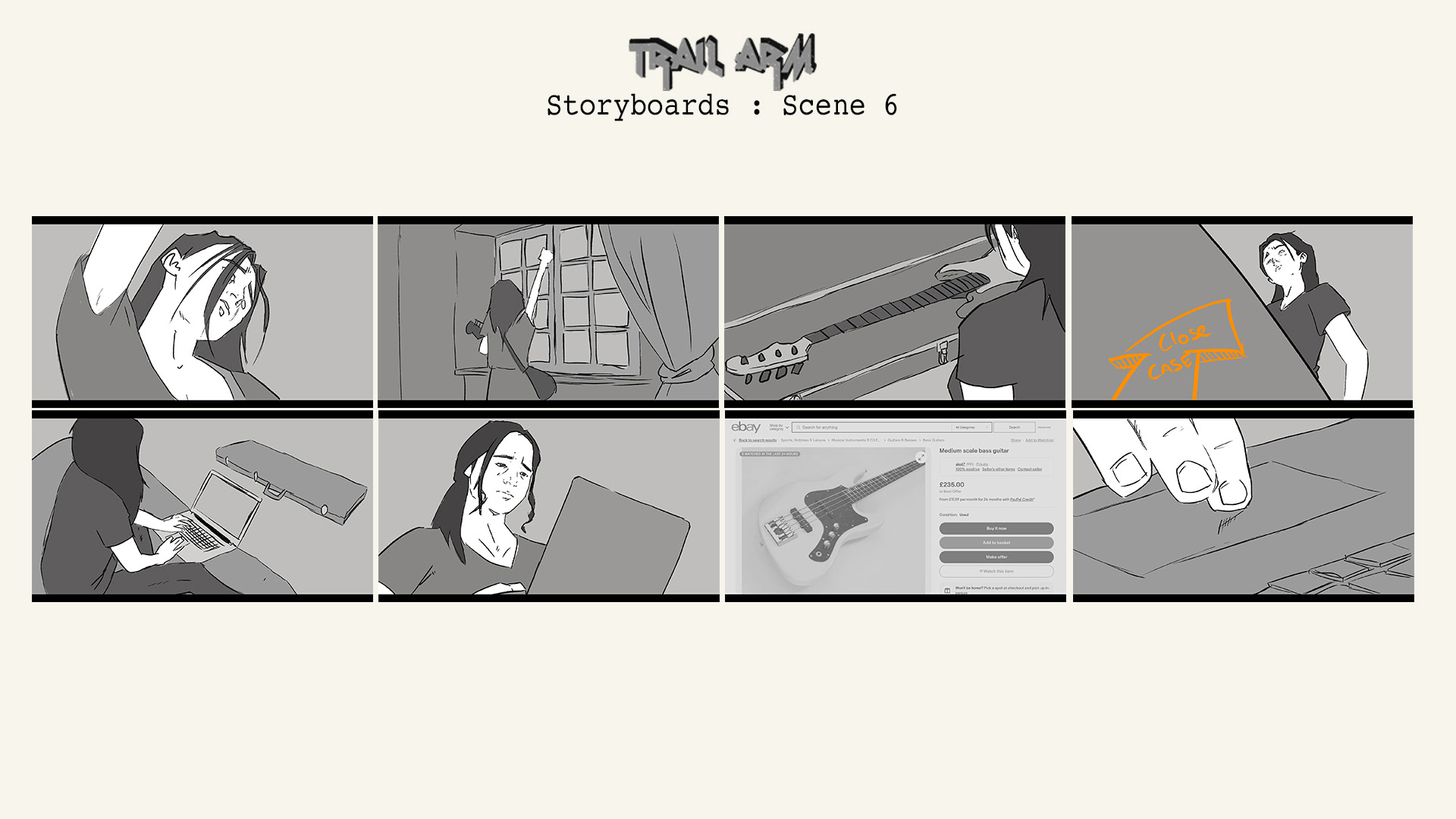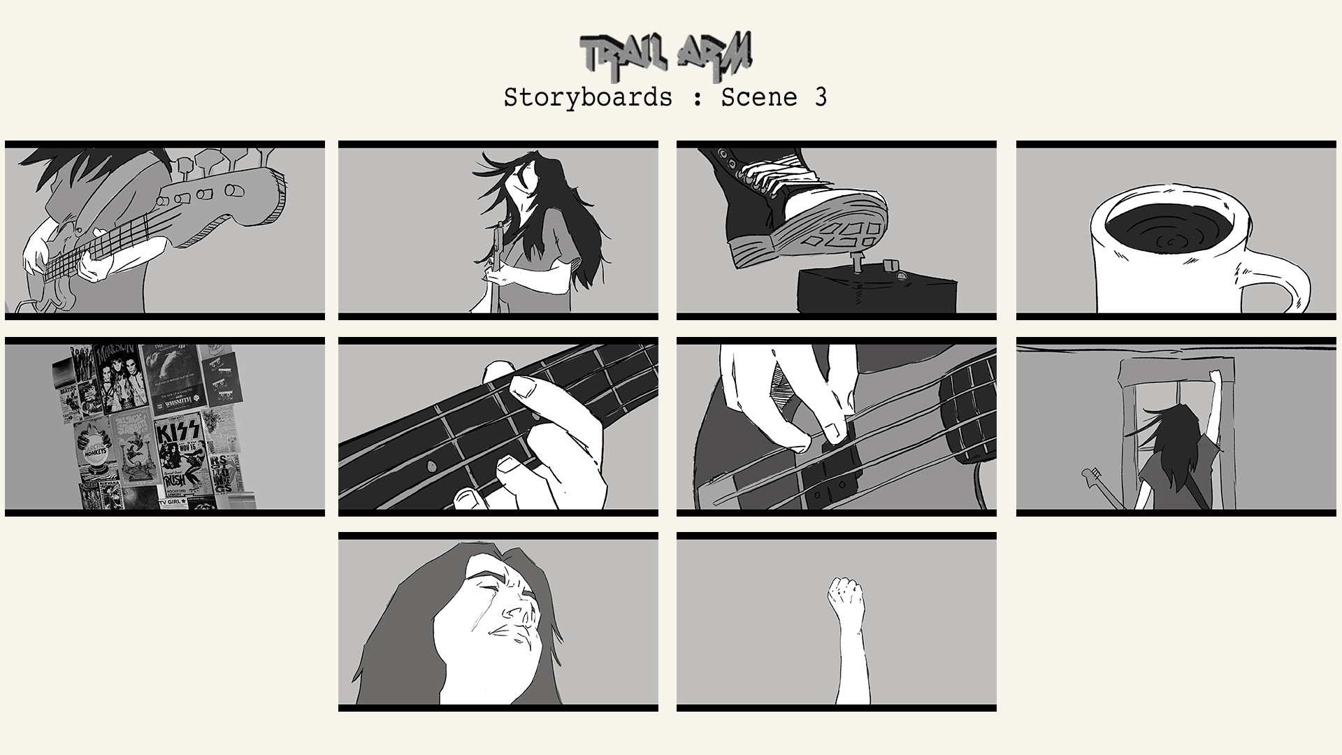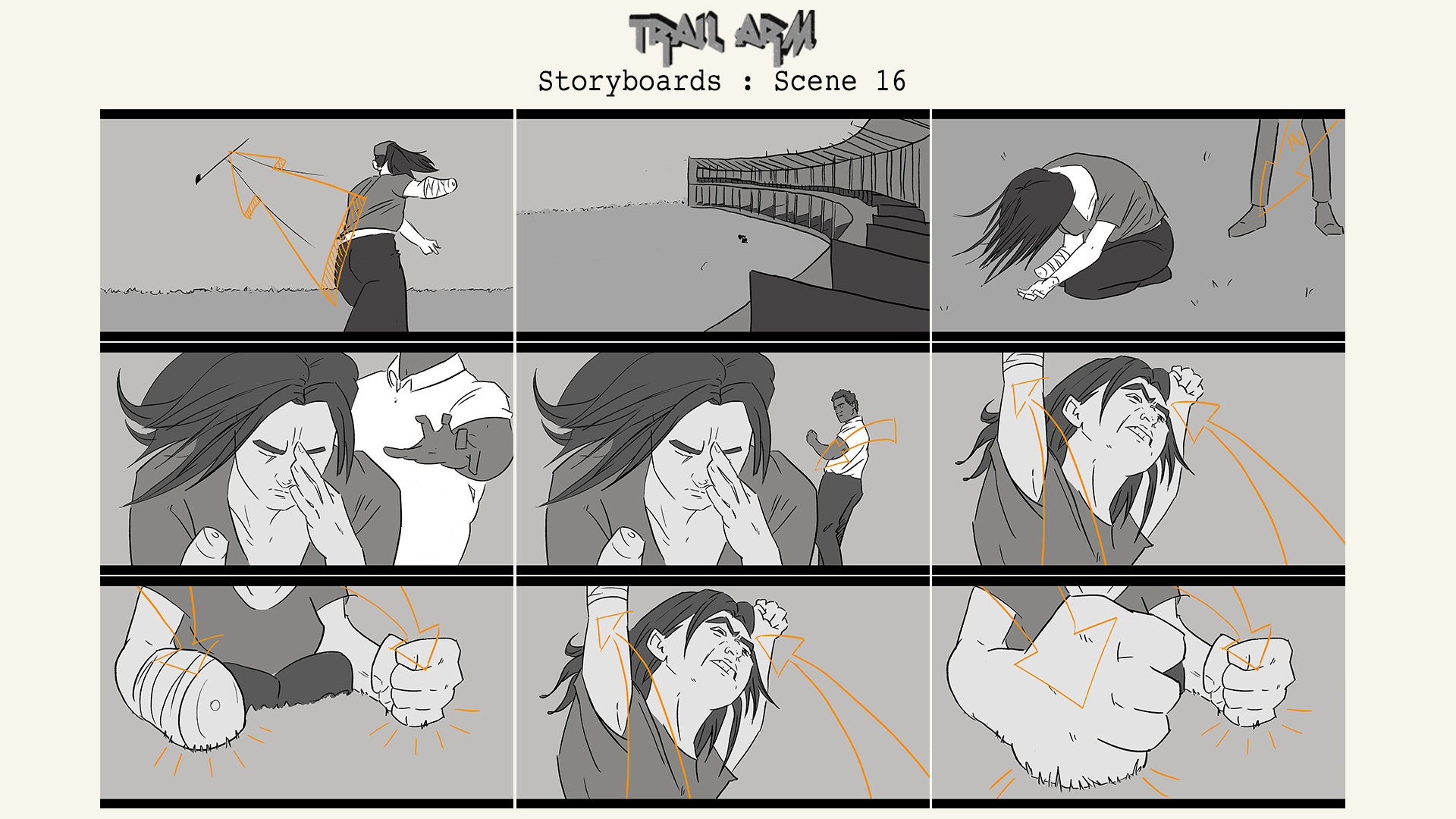 My illustrated storyboards for my upcoming short film project 'Trail Arm'.